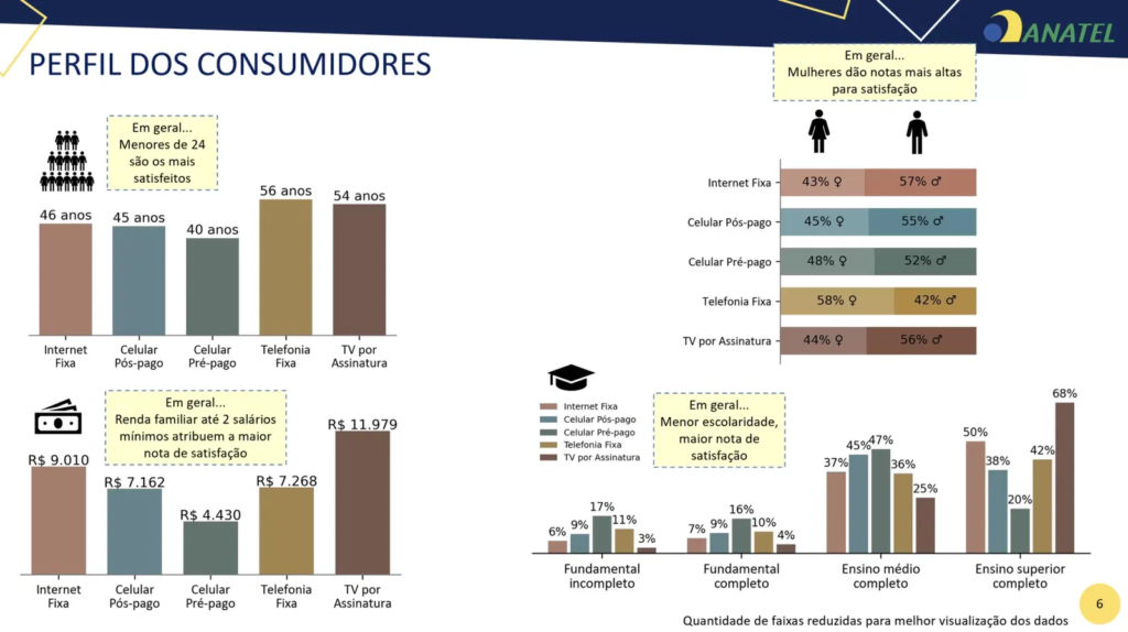 Entre os principais resultados, a Anatel destacou o aumento da satisfação com a Internet fixa e a telefonia fixa, além de um desempenho positivo da telefonia móvel, tanto no pré quanto no pós-pago. Por outro lado, a TV por assinatura segue em trajetória negativa, com queda em todos os indicadores de satisfação e qualidade.